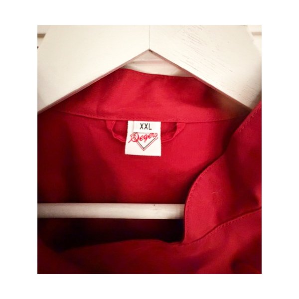 Färg vinröd? eller mörkt röd, strl: XXL, bredd axlar ca 46 cm, längd ca 75 cm, vikt 320g